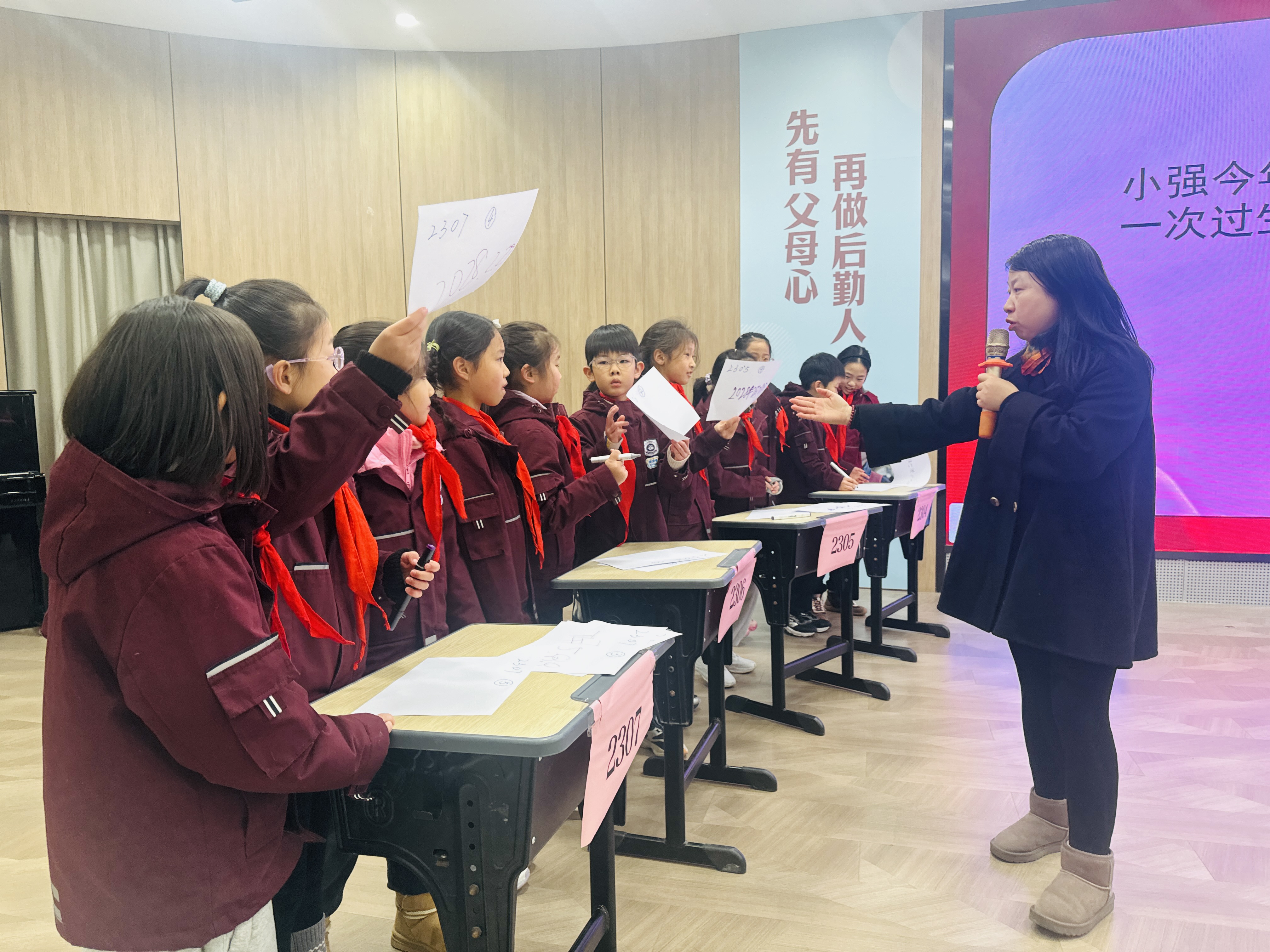 颁奖仪式在活动回顾视频中拉开序幕。镜头再现了学生们从“侦探招募”到“谜案破解”、从“台历共创”到“生活规划”的全过程。无论是侦破“时间胶囊丢失案”时的缜密推理,设计班级专属台历中的创意碰撞,还是践行“书包不回家”时间管理实践的责任担当,每个画面都记录着金小学子在真实情境中学习、在跨学科实践中成长的生动足迹。